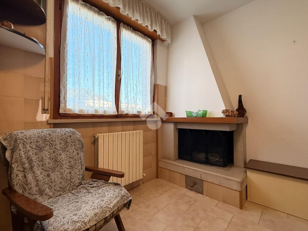 La cucina, separata e abitabile è dotata di camino e di un secondo balcone, che la rende particolarmente luminosa e funzionale.